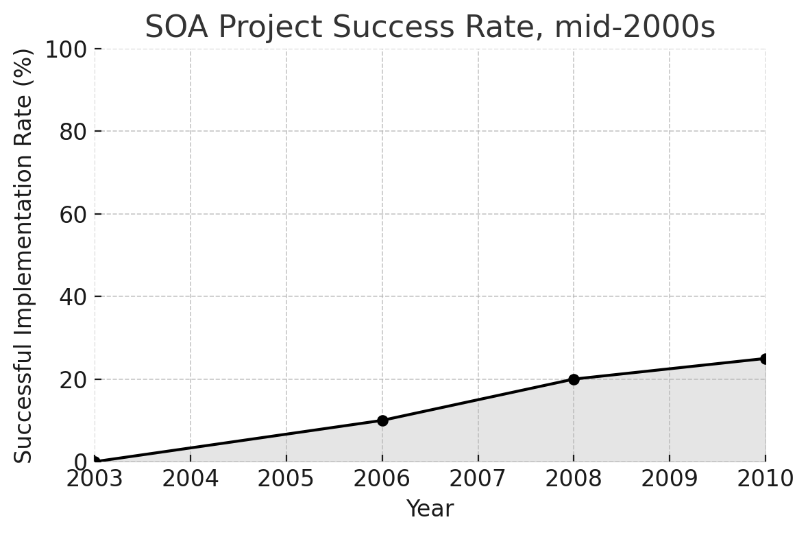 Same story. But microservices and APIs emerged out of this wave. Could we have skipped this wave? No. It was foundational at the level of architectural principles. Software AG, a popular name during the SOA wave still managed to sell WebMethods to IBM as recently as 2023.