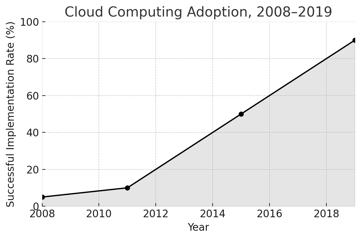 When cloud computing arrived around 2006–2008, enterprises were initially cautious. Early adoption was slow – a 2010 poll found only 7–9% of enterprises had implemented cloud in any form.